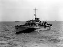 In March 1944 Baddeck was part of the Royal Navy escort group EG-9 based out of Derry, Northern Ireland. In April 1944 the ship was based in Portsmouth as part of Western Approaches Command tasked with invasion escort duties. She was involved in the D-Day landings as part of Operation Neptune.[11][14][15] While acting as an invasion escort on 13 June 1944 the ship repulsed an attack by motor torpedo boats.