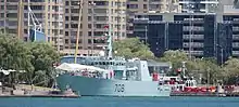 In January 2016, Moncton, alongside sister ship Summerside, sailed for the Caribbean to take part in Operation Caribbe.[9] In August, the ship sailed with Shawinigan to the Arctic to take part in Operation Nanook.[10][11] During the operation, the ship visited Churchill, Manitoba and patrolled Hudson Bay.[12] Shawinigan and Moncton returned to Halifax on 30 September.[13] In February 2017, Summerside and Moncton deployed to the coast of West Africa in the Gulf of Guinea as part of the naval exercise Neptune Trident.[14] The two ships conducted missions against pirates and illegal fishing, along with making port visits to Sierra Leone, Senegal, Liberia and Ivory Coast.[15] During the deployment, Moncton took part in a joint training exercise with the Liberian Coast Guard.[16] Summerside and Moncton returned to Halifax on 2 May after two-month deployment to West Africa.[17] In November, Moncton was in the Caribbean to take part in Operation Caribbe. On 11 November, Moncton intercepted a suspect vessel, and her embarked United States Coast Guard LEDET unit boarded the vessel, seizing 834 kg (1,839 lb) of illegal cocaine.[18]