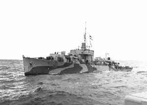 The River-class frigate was designed by William Reed of Smith's Dock Company of South Bank-on-Tees. Originally called a "twin-screw corvette", its purpose was to improve on the convoy escort classes in service with the Royal Navy at the time, including the Flower-class corvette. The first orders were placed by the Royal Navy in 1940 and the vessels were named for rivers in the United Kingdom, giving name to the class. In Canada they were named for towns and cities though they kept the same designation.[4] The name "frigate" was suggested by Vice-Admiral Percy Nelles of the Royal Canadian Navy and was adopted later that year.[5]