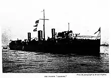 In 1896 Charger was in reserve at Portsmouth.[11] In July 1901, she took part in that year's Naval Manoeuvres.[12] Charger was commissioned at Devonport by Lieutenant Robert William Francis Travers on 11 March 1902,[13] for service with the Devonport instructional flotilla.[14] Travers was reassigned to the battleship Nile the following month, when Lieutenant G. H. Brown was appointed in command of Charger.[15] She took part in the fleet review held at Spithead on 16 August 1902 for the coronation of King Edward VII.[16] On 23 September 1903, Charger struck rocks in Loch Nevis on the West coast of Scotland.[17]
