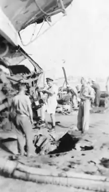 After temporary repairs were made, she was sent to Malta for permanent repairs which lasted until 1 February 1941, after she was further damaged on 19 January.[16] On 25 February, she participated in Operation Abstention; together with Hereward and the gunboat Ladybird, Decoy landed commandos on the island of Kastelorizo, but they were overwhelmed by an Italian counter-attack. Only a few survivors were taken off two days later.[17]
