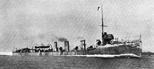 On the outbreak of the First World War the 6th Flotilla formed the basis of the Dover Patrol.[14] An early duty was escorting the ships carrying the British Expeditionary Force to France. A German submarine attempted to attack Mohawk on 6 October, but the destroyer and the ships she was escorting were unharmed. On 1 June 1915 Mohawk encountered a minefield laid by SM UC-11 at the southern entrance to the Downs. Several mines were spotted close to Mohawk which struck one. Five of Mohawk's crew were killed, and Mohawk was towed back to Dover with her decks almost awash.[17][18]