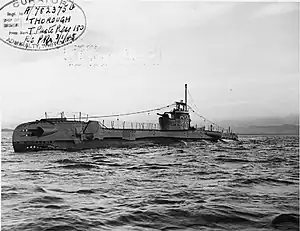 HMS Thorough was a British submarine of the third group of the T class. She was built as P324 by Vickers Armstrong, Barrow, and launched on 30 October 1943. So far she has been the only ship of the Royal Navy to bear the name Thorough.