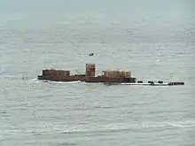 Cerberus was sold to the Melbourne Salvage Company for £409 on 23 April 1924, with the buyer to break her up for scrap.[7][11][32] The warship was towed from Corio Bay to Williamstown Naval Dockyard on 14 May for disassembly.[33] After the salvage company removed what they could, she was then sold on to the Sandringham council for £150.[15] The monitor was scuttled on 26 September 1926 at Half Moon Bay to serve as a breakwater for the Black Rock Yacht Club.[19][23] During her life, Cerberus never left Port Philip Bay, and never fired in anger.[11][35]