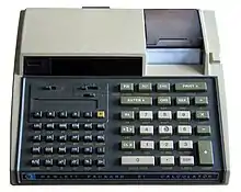 The HP-67 is a magnetic card-programmable handheld calculator, introduced by Hewlett-Packard in 1976 at an MSRP of $450.[1] A desktop version with built-in thermal printer was sold as the HP-97 at a price of $750.[2]