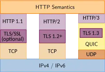 HTTP/3 is the third major version of the Hypertext Transfer Protocol used to exchange information on the World Wide Web, complementing the widely-deployed HTTP/1.1 and HTTP/2. Unlike previous versions which relied on the well-established TCP (published in 1974),[1] HTTP/3 uses QUIC, a multiplexed transport protocol built on UDP.[2] On 6 June 2022, IETF published HTTP/3 as a Proposed Standard in RFC 9114.[3]