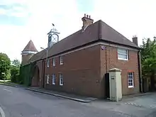 The original Hadley Lodge was built in the 18th century and destroyed by fire in 1981.[1] The house was owned and occupied by Charles Jeffryes Cottrell, rector of Hadley 1786–1819, until his death in 1819.[2] In 1852 the house was occupied by Charles Herbert Cottrell, author and magistrate in Hertfordshire and Wiltshire.[3] In the mid twentieth century, Nikolaus Pevsner in The Buildings of England, noted the house's four-column ionic porch.[4]