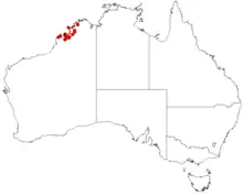 It is a bulbous perennial herb, growing from 0.4-0.65 m high, on sands and sandy clays in the west Kimberley region of Western Australia.[5] Its red/brown flowers are seen from August to November.[3]