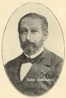 Haim Benchimol (1826 or 1834 - 1906) was a businessman, newspaper publisher, Jewish community leader and philanthropist in Tangier, Morocco. In 1904 he founded the Benchimol Hospital, at the time one of Tangier's main hospital facilities, which remained in activity until 2002.[1]