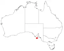 This species is endemic to a small area on the western end of Kangaroo Island in South Australia confined to the more elevated parts of the lateritic and is part of the dense mallee-heath that grows in clay-loam to sandy soils.[4]