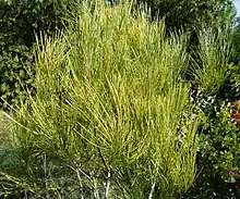 Hakea bucculenta, commonly known as red pokers,[2] is a large shrub in the family Proteaceae endemic to Western Australia. A spectacular ornamental shrub with red or orange flowers that appear in rod-like blooms in leaf axils for an extended period from May to November.