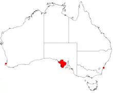 Confined to the Eyre Peninsula in South Australia. Grows in sandy soil in mallee scrub and withstands moderate frosts. A useful, dense shrub for dry conditions and wildlife habitat.[3]