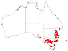 The species is native and widespread in New South Wales, Victoria and Tasmania in Australia. Additionally it is naturalised in South Australia and Portugal.