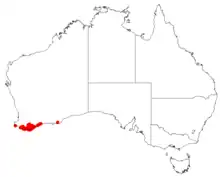 Occurs from Manjimup south coast to Denmark east to the Fitzgerald River National Park.[4] Hakea florida grows on sand, loam, clayey sand, gravel, laterite and granite. May be grown in sun or semi-shade, it is frost and drought tolerant.[2][3]