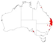 Hakea florulenta occurs in coastal areas of south-eastern Queensland and northern New South Wales from Bundaberg south to Grafton. Found growing in open forest, often associated with Melaleuca on sand or sandstone sometimes in poorly drained areas.[3]