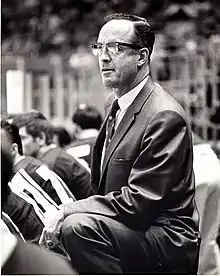 Laycoe coached the New Westminster Royals of the Western Hockey League in 1956–57 and remained with the franchise when it moved to Portland, Oregon for the 1960–1961 season and was renamed the Portland Buckaroos. The Buckaroos won the league championship Lester Patrick Cup its first year in existence. Laycoe coached the Buckaroos for nine seasons and won another league championship in 1964–1965.[2] During the 9 Buckaroo years, Laycoe led them to more victories(362) than any other professional team. In 1969, Laycoe moved to the National Hockey League, coaching the Los Angeles Kings for part of one season and then moving on to the expansion Vancouver Canucks for two more seasons. He later coached the Dutch national team in the 1977 B Pool World Championships.He continued to live in Vancouver after leaving the Canuck's management. His final position in hockey was as a scout with the New York Islanders.[3] The Islanders gave team Stanley Cup rings to Laycoe after each of their 1980 to 1984 Stanley Cup wins.