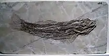 The following cladogram[11] summarizes the evolutionary relationships of extinct (indicated with a dagger, †) and living orders of Halecomorphi.