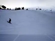 Half-pipes in snow were originally done in large part by hand or with heavy machinery. Pipes were cut into snow using an apparatus similar to a grain auger. Colorado farmer Doug Waugh created the Pipe Dragon used in both the 1998 and 2002 Winter Olympics.[6] One current method of half-pipe cutting is by use of a Zaugg Pipe Monster, which uses five snow-cutting edges to create an elliptical shape that is purportedly safer and allows the rider to gain more speed.[7]