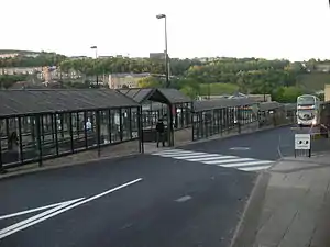 Halifax bus station serves the town of Halifax, West Yorkshire, England. The bus station is owned and managed by West Yorkshire Metro. The bus station was opened in 1989 and is made of up 4 large islands (A, B, C and D) with 20 stands in total. The bus station is situated in the Halifax Town Centre and could be accessed from Northgate and Wade Street. Several services, such as the majority of services to Illingworth and Mixenden do not serve the bus station and use stops in the town centre.[1]