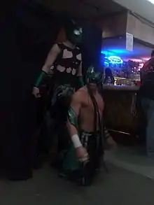 When Chikara's season 15 started on January 25, 2015, Hallowicked and Frightmare worked as rudos, separated from UltraMantis Black.[58] In addition to debuting a new look,[58] Hallowicked also began speaking English in his interviews following the turn.[59] Early in the year, Chikara started the Challenge of the Immortals tournament with Hallowicked appointed captain of one of the ten teams. In the draft, Hallowicked picked Frightmare, Blind Rage and Silver Ant for his team, named "Nightmare Warriors".[60] On April 6, during Chikara's tour of the United Kingdom, Hallowicked defeated Icarus to become the third Chikara Grand Champion.[61][62] With the win, Hallowicked became the first of only two wrestlers, the other being Mark Angelosetti, to have won every Chikara championship. He made his first successful title defense on May 24 against Ashley Remington.[63] In September, Hallowicked, Frightmare and Silver Ant represented the Nightmare Warriors in the 2015 King of Trios, where they made it to the quarterfinals, before losing to eventual tournament winners, Team AAA (Aero Star, Drago and Fénix).[64] At the season 15 finale on December 5, Hallowicked successfully defended the Grand Championship in a three-way match against Eddie Kingston and Icarus, the two previous Grand Champions. However, immediately afterwards, he was challenged by Princess KimberLee, who defeated him to become the new champion.[65] On January 30, 2016, at the season 16 premiere, Hallowicked and Frightmare unsuccessfully challenged N_R_G (Hype Rockwell and Race Jaxon) for the Campeonatos de Parejas.[66] On May 30, Hallowicked defeated Princess KimberLee in Glasgow, Scotland to become the first two-time Chikara Grand Champion.[67] During the first half of 2016, Hallowicked formed a new rudo stable around himself, serving an entity known as "Nazmaldun". After Hallowicked used the Eye of Tyr to turn UltraMantis Black to his and Frightmare's side,[68] the group expanded to also include Icarus, Kobald, Kodama, Mark Angelosetti and Obariyon.[69] On September 2, Jigsaw debuted as the newest member of the group, teaming with Hallowicked and Icarus in the first round of the 2016 King of Trios tournament, where they defeated Bullet Ant, Missile Assault Man and Worker Ant.[70] The following day, Hallowicked, Icarus and Jigsaw defeated Major League Moustache (Dasher Hatfield, Trent Seven and Tyler Bate) to advance to the semifinals of the tournament.[71] On the third and final day of the tournament, Hallowicked, Icarus and Jigsaw were eliminated after being disqualified in their semifinal match against Team JWP (Command Bolshoi, Hanako Nakamori and Manami Katsu).[72] The season concluded on December 3 with Hallowicked leading his stable to the 2016 torneo cibernetico. He lasted to the end of the match, but was finally defeated by Dasher Hatfield. Following the match, Ophidian stole the Eye of Tyr from UltraMantis Black, releasing him from under its spell.[73] On July 24, 2020, Hallowicked announced his resignation from Chikara and the Wrestle Factory, in light of the Speaking Out Movement.[74]