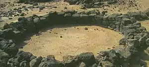 Handoga is located 14 km to the west of Dikhil, Djibouti. During the first excavations in 1970, archaeologists discovered foundations of stone houses and the walls of a stone edifice with a recess that faces Mecca.