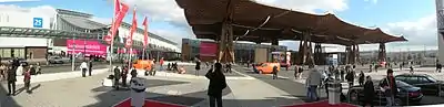 The Hanover Fairground (in German: Messegelände Hannover) is an exhibition area in the Mittelfeld district of Hanover, Germany. Featuring 392,453 m² (4.2 million sq.ft.) of covered indoor space, 58,000 m² (624,306 sq ft) of open-air space, 24 halls and pavilions, and a convention center with 35 function rooms, it is the largest exhibition ground in the world.[1]