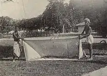During the First World War, Maxwell-Lefroy volunteered but was rejected on medical grounds from military service. In 1915 he took up a position travelling across India as Imperial silk specialist. Along with E.C. Ansorge, magistrate and collector in Bihar and Orissa; and an amateur entomologist, he wrote a Report on an Inquiry into the Silk Industry in India (1917) in three volumes but not without a major interruption.[3] While in Bangalore on the silk study, on 17 April 1916, he received a telegram from the government seeking help on fly control in Mesopotamia. Appointed as an acting Lt-Col, he was sent to assist C.F.C. Beeson and shipped out from Bombay. He published on his investigations into the control of flies and other pests, a note in the Agricultural Journal of India included a photograph of his assistants from Pusa.[15][16] He also introduced a treatment for the control of lice in the trenches called vermijelli that kept away jigger fleas and ticks.[17] It was reported that there was a fall of 66% in cases of dysentery, cholera and typhoid after his measures were put in place.[18] A bout of beri-beri invalided him and he returned to India, recovered and then travelled to England. Shortly after, there was a problem with weevils infesting wheat in Australia which hampered food supplies during the war. In October 1917 he sailed to San Francisco and then to Sydney where he examined the wheat weevil problem along with W.W. Froggatt, the Government entomologist and suggested various measures. He also examined the issue of sheep blowflies Lucilia sericata before setting off from Sydney to England in May 1919.[3]