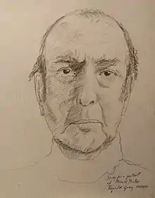 Pinter enjoyed running and broke the Hackney Downs School sprinting record.[18][19] He was a cricket enthusiast, taking his bat with him when evacuated during the Blitz.[20] In 1971, he told Mel Gussow: "one of my main obsessions in life is the game of cricket—I play and watch and read about it all the time."[21] He was chairman of the Gaieties Cricket Club, a supporter of Yorkshire Cricket Club,[22] and devoted a section of his official website to the sport.[23] One wall of his study was dominated by a portrait of himself as a young man playing cricket, which was described by Sarah Lyall, writing in The New York Times: "The painted Mr. Pinter, poised to swing his bat, has a wicked glint in his eye; testosterone all but flies off the canvas."[24][25] Pinter approved of the "urban and exacting idea of cricket as a bold theatre of aggression."[26] After his death, several of his school contemporaries recalled his achievements in sports, especially cricket and running.[27] The BBC Radio 4 memorial tribute included an essay on Pinter and cricket.[28]