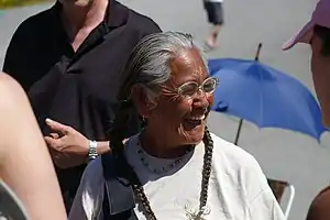 Harriet Nahanee also known as Tseybayotl-t[1] (December 7, 1935[2] – February 24, 2007) was an indigenous rights activist, residential school alumna, and environmental activist. She was born in British Columbia, Canada. She comes from the Pacheedaht who are part of the Nuu-chah-nulth, Indigenous peoples from the Vancouver Island. As a child, Nahanee attended both Ahousaht Residential School and Alberni Residential School, and would later testify about the horrible treatment she received there. She married into the Squamish (Sḵwxwú7mesh).