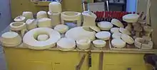 A hat block, also known as a hat form or bashing block, is a wooden block carved into the shape of a hat by a craftsman known as a block shaper. It is used by hat makers and milliners[1] to produce a hat. Today there are only a handful of block shapers left. In the United Kingdom, hat block making has been listed as an endangered craft by the Heritage Crafts Association, with three remaining hat block making businesses still in operation as of 2022.[2]