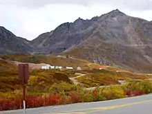 The Willow Creek mining district at Hatcher Pass is historically the third-largest lode-gold producing district in Alaska, having produced 624,000 oz of gold.[9] Mining of placer gold deposits began in the Willow Creek mining district in 1906. Hardrock gold mining began a few years later from high-grade vein lode deposits.[10] Placer mining for gold has continued sporadically to this day. Underground mining continued at a variety of locations around the pass until 1951. In the 1980s, one of the area's hard-rock mines was briefly re-opened. At least one mining company is actively exploring for gold in the area now.[11]