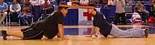 Also, the competitors may face each other with their legs interlocked and pull their heads backwards until one of the competitors bends forward or gives up.[8][9] This game is traditionally males only.[9]