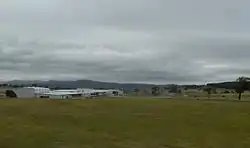 Initially named HQJOC(Bungendore), occupation of the permanent headquarters near Kowen, Australian Capital Territory, commenced in early December 2008, and subsequently all 550 staff from all branches have collocated in the one purpose-built facility,[3][4][5] (named the "General John Baker Complex"), along with the Headquarters of the Special Operations Commander Australia (SOCOM/SOCAUST). The Baker Complex is located adjacent to the Kowen district of the Australian Capital Territory, about 25 km east of Canberra city, 15 km east of Queanbeyan and 15 km south-southwest of Bungendore. It is situated just to the south of the Bombala railway line that delineates the border between New South Wales and the Australian Capital Territory, although access to the site is from the Kings Highway in the Kowen district via a restricted-access, Defence-owned road that passes under the railway line.[6] The site is part of NSW but is part of the ACT defence district, its postal address is 'Canberra, ACT', and staff adhere to ACT public holidays. A secondary entrance road also provides access to the site from the Captains Flat road. The site is about 4 km north-west from the Molonglo Observatory Synthesis Telescope, and particular arrangements were needed at the complex so that electrical interference is not emitted. The two-storey main Headquarters building is located inside two security fences, one at a 100m radius from the building, the other at 500m.[6]