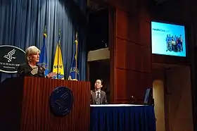 Kathleen Sebelius resigned as Secretary of Health and Human Services on April 10, 2014. She was replaced by Sylvia Mathews Burwell on June 9.