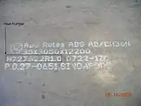 A heat number is an identification coupon number that is stamped on a material plate after it is removed from the ladle and rolled at a steel mill.