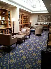Visual art exhibits that change seasonally can be viewed on the mezzanine. These exhibits are curated by Portland's Elizabeth Leach Gallery. The Heathman also has a library on the mezzanine level containing a large collection of books signed by authors who have been guests at the hotel.[19]