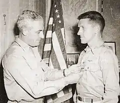 Macpherson was then assigned to desk duty at Air Force Headquarters in Bari, Italy.[22] There he was assigned the task of writing a manual on the use and combat applications of HX2 "Pathfinder" radar, which he completed along with two other experienced navigators.[22] He also helped to launch a training school for radar navigators and assisted with mission planning.[22] Macpherson would receive a Bronze Star for his work helping to expand the use of the Pathfinder radar navigation program, a technology which proved itself vital to successful operations against enemy oil refineries.[23]