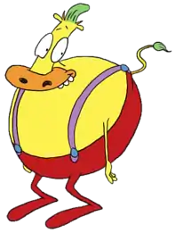 The Nickelodeon UK page describes Heffer as a "devoted friend" who "loves life."[9] Heffer's lack of fear mostly stems from stupidity instead of genuine bravery.[10] The Nickelodeon South East Asia website describes him as an "overgrown slob."[11] Despite being obese, he can drive; unlike Rocko he does not wear seat belts, mostly because the seat belts do not extend enough for him to wear them comfortably. Also he seems to be a hopeless romantic at times as mentioned in "Sugar Frosted Frights," where he asks Filburt's shell while in an eight-ball mode if he will ever find true love.