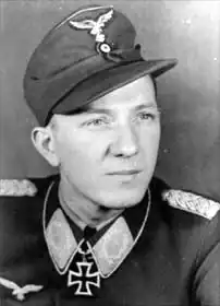On 2 April 1945, he was appointed Geschwaderkommodore (wing commander) of fighter wing JG 51. He succeeded Major Fritz Losigkeit who took command of Jagdgeschwader 77 (JG 77—77th Fighter Wing).[22] Command of IV. Gruppe of JG 51 was then passed to Oberleutnant Günther Josten.[15]