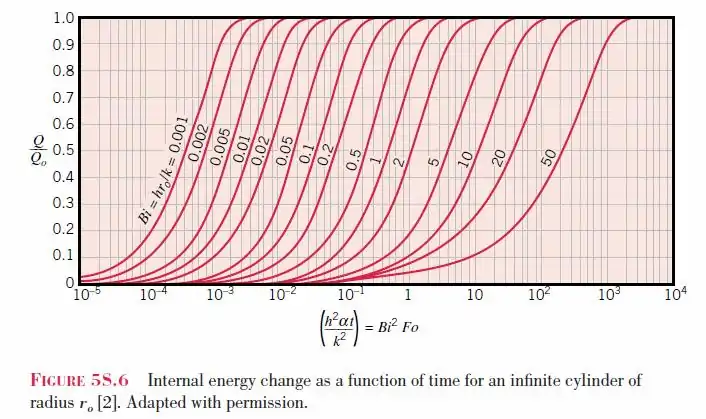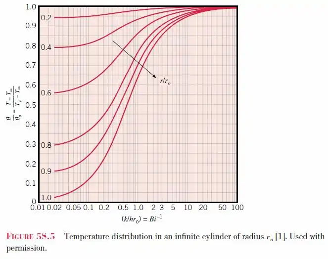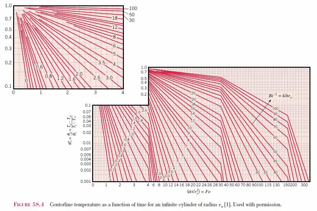 For the infinitely long cylinder, the Heisler chart is based on the first term in an exact solution to a Bessel function.[1]