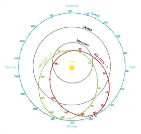 | Perihelion altitude | Helios-A: 0.31 AU Helios-B: 0.29 AU |