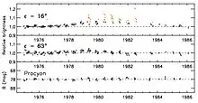 The Helios zodiacal light measurements show excellent stability.[16] This allows detecting local brightness excesses if they are crossed by the Helios field-of-view, like it happened for comet West[17] or for the Quadrantid meteor shower. Repetition by about 0.2% from orbit to orbit sufficed to detect the dust ring along the orbit of Venus.[18]