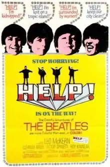 Help! is a 1965 British musical comedy-adventure film directed by Richard Lester, starring The Beatles and featuring Leo McKern, Eleanor Bron, Victor Spinetti, John Bluthal, Roy Kinnear and Patrick Cargill. The second film starring the Beatles following Lester's A Hard Day's Night, Help! sees the group struggle to protect Ringo Starr from a sinister eastern cult and a pair of mad scientists, all of whom are obsessed with obtaining a sacrificial ring sent to him by a fan.[3] The soundtrack was released as the band's fifth studio album under the same name.