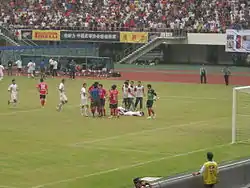 Henan Football Club (Chinese: 河南), previously known as Henan Jianye Football Club (Chinese: 河南建业), is a professional football club that currently participates in the Chinese Super League under licence from the Chinese Football Association (CFA). The team is based in Zhengzhou (Chinese: 郑州市), in the province of Henan (Chinese: 河南省), and their home stadium is the Zhengzhou Hanghai Stadium, with a seating capacity of 29,860. Their owners are the Jianye Residential Group (China) Co., Ltd., which is part of the Central China Real Estate Limited. Their name refers to Jianye, a former name of the ancient city of Jiankang.[2]