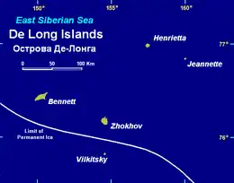 Henrietta Island (Russian: Остров Генриетты, tr. Ostrov Genriyetty; Yakut: Хенриетта Aрыыта, romanized: Xenriyetta Arııta) is the northernmost island of the De Long archipelago in the East Siberian Sea. Administratively it belongs to Yakutia of the Russian Federation.