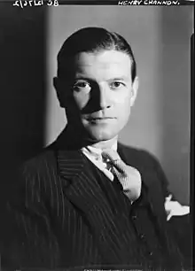 Channon was first elected as a Member of Parliament (MP) in 1935. In his political career he served as Parliamentary Private Secretary to Rab Butler at the Foreign Office from 1938 in the Chamberlain administration and though he retained that position under Winston Churchill he did not subsequently achieve ministerial office, partly as a result of his close association with the Chamberlain faction. He is remembered as one of the most famous political and social diarists of the 20th century. His diaries were first published in an expurgated edition in 1967. They were later released in full, edited by Simon Heffer and published by Hutchinson in three volumes, between 2021 and 2022.[1][2]