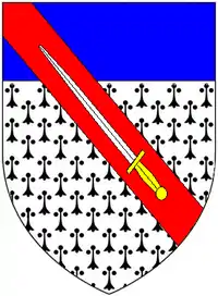 - Charles Dakeyne Gladwin (1775–1844), eldest son and heir, Lt-Col. of the Derbyshire Militia, who let Stubbing Court to James Abercromby, 1st Baron Dunfermline (1776–1858), Speaker of the House of Commons and moved to Belmont in the parish of Brampton, Derbyshire.[15] Charles married Mary Anne Stringer and left one daughter, Frances Gladwin, his sole heiress, who married Stephen Melland.[7] The Gladwin estates descended to Charles's great-nephew Captain Richard Henry Goodwin-Gladwin (1833–1895) of Hinchley Wood House, Ashbourne, who on 24 April 1881 assumed the surname and arms of Gladwin by royal licence.[16] Richard's own heir was his nephew (son of his sister Frances Goodwin and her husband John Errington) Gilbert Launcelot Gladwin-Errington (born 1876), of Hinchley Wood House.[7]