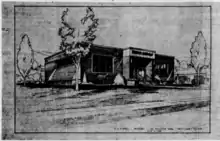 In the late 1950s, Mrs. Amanda Duvall approached the City of Heppner with a gift to build a new joint library-museum building as a memorial to her husband, Harry Duvall, and her daughter, Erma Duvall Wickersham. Mrs. Duvall was inspired during the planning of Oregon's centennial celebration.[7][8] The City of Heppner formed a seven-member commission in 1958 to accept Duvall's gift and begin plans for the then-new library. The library-museum building was originally planned to be located on the corner of May and Court streets but the land was too small. The City of Heppner then offered to donate sufficient land in its city park for the building. The library-museum building was designed by W. H. Gilmore, a Portland-based architect. The design called for a 64’ x 72’ concrete block building with a brick veneer finish. Bids for construction were solicited in July 1959 at an expected cost of approximately $65,000.[9]
