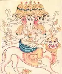 Heramba (Sanskrit: हेरम्ब, Heraṃba), also known as Heramba Ganapati (Heraṃba-gaṇapati), is a five-headed iconographical form of the Hindu god Ganesha (Ganapati). This form is particularly popular in Nepal.[1] This form is important in Tantric worship of Ganesha. He is one of the most popular of the thirty-two forms of Ganesha.