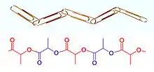 While at Karlsruhe and later, Zurich, Staudinger began research in the chemistry of rubber, for which very high molecular weights had been measured by the physical methods of Raoult and van 't Hoff. Contrary to prevailing ideas (see below), Staudinger proposed in a landmark paper published in 1920 that rubber and other polymers such as starch, cellulose and proteins are long chains of short repeating molecular units linked by covalent bonds.[10] In other words, polymers are like chains of paper clips, made up of small constituent parts linked from end to end (Figure 3).